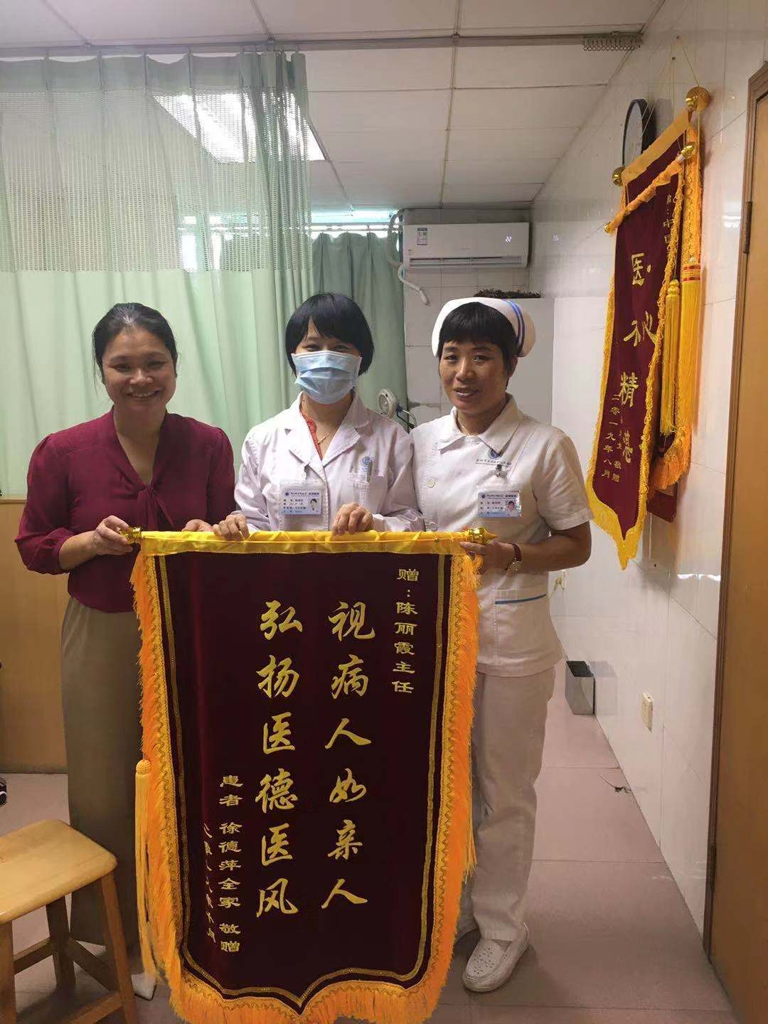 10月22日,产科陈丽霞主任医师收到了产妇徐女士送来的锦旗。徐女士怀孕过程比较坎坷,整个孕期都在陈主任处做产检,得到陈主任耐心、专业的指导,也感受到了产科医护人员温馨的人文关怀。特送来“视病人如亲人,弘扬医德医风”的锦旗表示感谢,这是对产科工作的高度肯定。(通讯员 阳妍 )