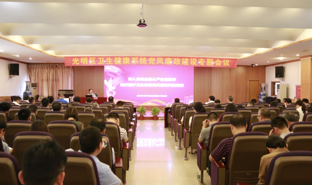 10月24日下午,区委卫生工委在东院区六楼会议室组织开展“光明区卫生健康系统党风廉政建设专题会议”,医院党政班子、决咨委成员、中层干部、支部书记、支委参加。龙华区纪委监委杨建婷老师以《深入贯彻全面从严治党要求做好医疗卫生系统党风廉政风险防控》为题与参会党员干部共同研讨新时期开展党风廉政建设和反腐败工作的重要意义,对卫生健康系统如何开展好党风廉政建设和作风建设进行了交流,为卫生健康系统打造一支素质过硬、作风优良、清正廉洁的干部队伍,营造风清气正的良好政治生态环境提出了指导性建议。(通讯员 黄丽丽)