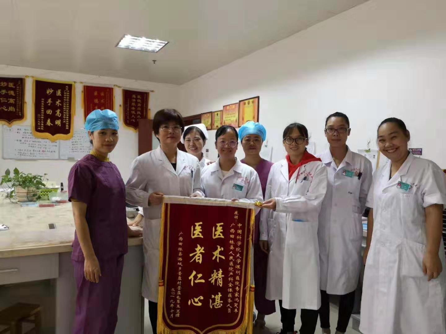 10月19日,澳博娱乐驻田林县人民医院帮扶医疗专家冯笑丰主任医师成功抢救了一例羊水栓塞病人,患者康复出院后送来了一面锦旗,以表谢意。(通讯员 黎海涛)