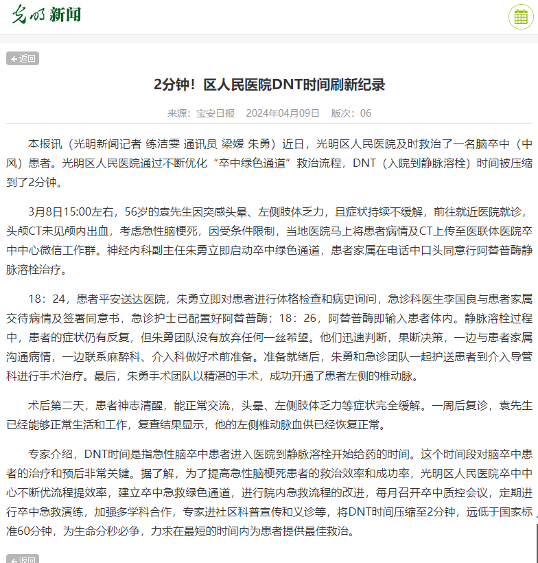 光明新闻:2分钟!区人民医院DNT时间刷新纪录