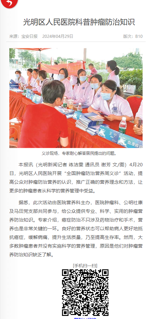 宝安日报:澳博娱乐-澳博投注网 科普肿瘤防治知识