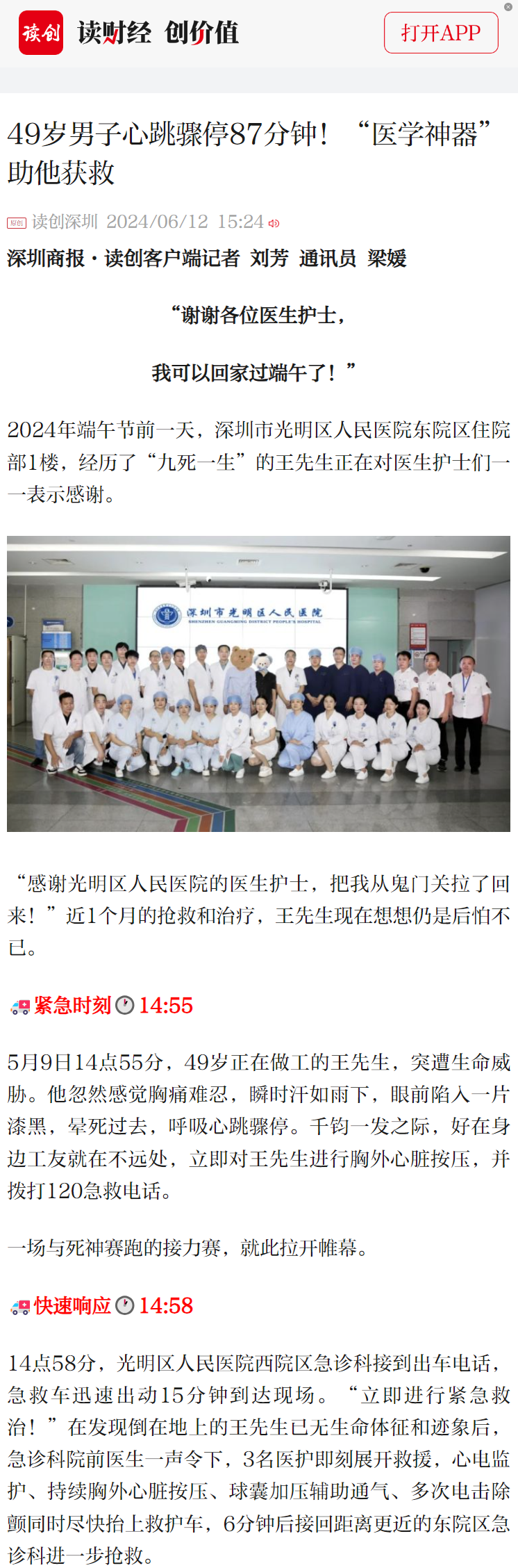 读创:49岁男子心跳骤停87分钟!“医学神器”助他获救