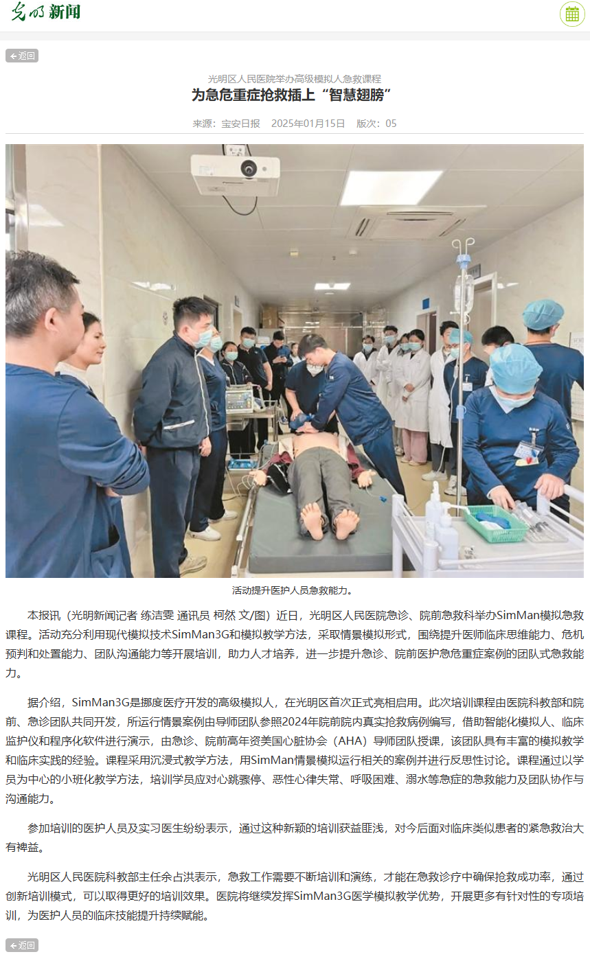 光明新闻:澳博娱乐-澳博投注网 举办高级模拟人急救课程 为急危重症抢救插上“智慧翅膀”