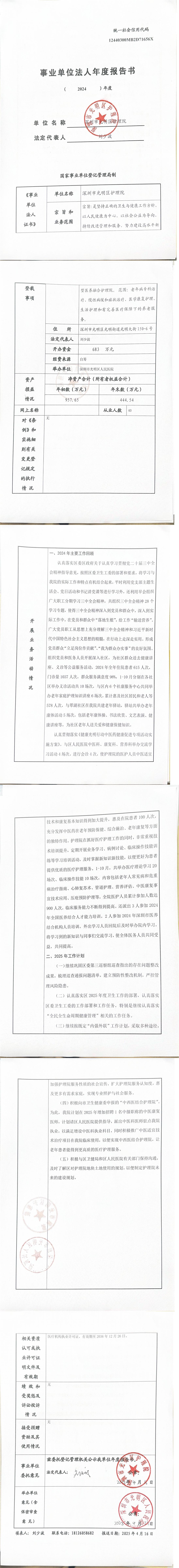 深圳市光明区护理院2024年事业单位法人年度报告书